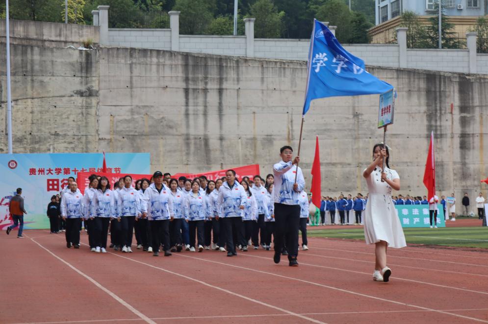 10月11日清晨,贵州大学第十七届体育节开幕式在我校西区体育场举行。入场式上,不同院系的团体方阵各出新意,展示独特的风采,他们喊着响亮的口号,迎着秋风表达着对这场体育盛会的期待与热爱。春风得意马蹄疾,一日看尽哲院美。我院师生代表们皎如玉树临风前,有着俊秀挺拔的身姿和坚定自信的步伐,高喊“养身浩然正气,存世知行合一”的口号,秉持“自由而全面地发展”的理念,展现着“生命在于运动”的昂扬精神。