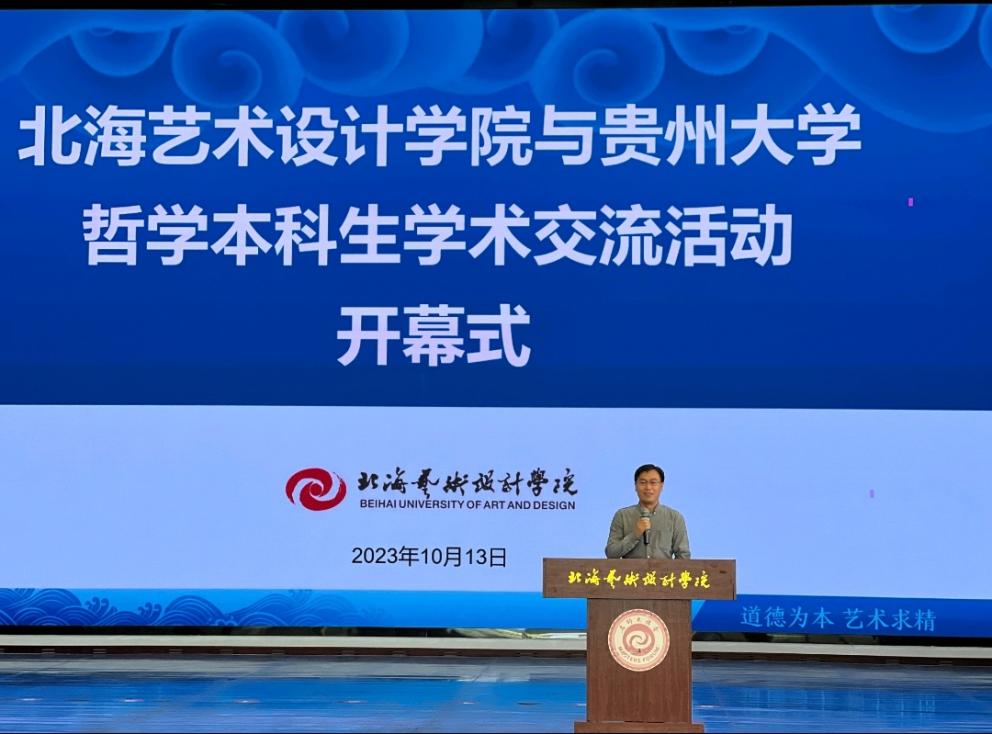 在交流活动开幕式上,北海艺术设计学院副校长王斌对我院师生的到访表示热烈欢迎,希望两院学生能够通过此次交流实现相互促进;我院党委书记周乐成就北海艺术设计学院对此次活动的全力支持表示感谢,希望两院全面加强合作,祝愿同学们在此次活动中有所得、有所思、有所悟。随后,教师代表宋君修在发言中提到北海艺术设计学院的文化氛围使其“深陷其中”,感受到了独特的哲学艺术魅力,希望大家跨越山川,互学互鉴,深入交流。
