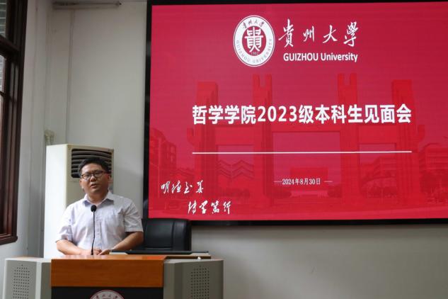 为帮助2023级本科生深入了解学院以及学科专业相关内容,哲学学院于2024年8月30日12:30在贵州大学东校区人文楼308召开了2023级本科生见面会暨年级大会。哲学学院党委书记黄梅、院长陈艳波、校党委正处级组织员韩艳、学院副院长梅其君、副院长兼副书记郭晓林、班主任陈刚、李明阳、教师代表陈漠,学院教学科研科叶霜、党政办公室聂陈睿等老师以及2023级全体同学参加了此次会议。会议由院学生科辅导员晏梦勋主持。