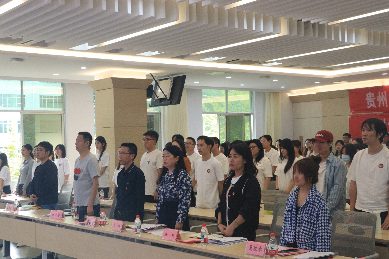 大会在庄严的中华人民共和国国歌中拉开序幕,与会成员全体起立,奏唱国歌。