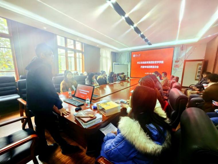 随后,陈元海校长表示对贵州大学以及我院毕业生的高度认可,我院2021级毕业生李福旭、彭小英在单位工作表现非常优秀,得到一致认可和肯定,为我院人才培养树立了良好的口碑,并就名锐教育集团的发展历程、企业文化、岗位设置、职责要求、薪酬福利及职业发展前景等方面作了全面介绍。陈元海校长、陈高祥校长分别对黔西南州自强中学以及安龙县盘江学校进行招聘宣讲。在互动环节中现场气氛热烈,同学们围绕课时安排、工作内容、晋升机制及个人成长空间等问题踊跃提问,两位校长逐一予以细致的指导解答。