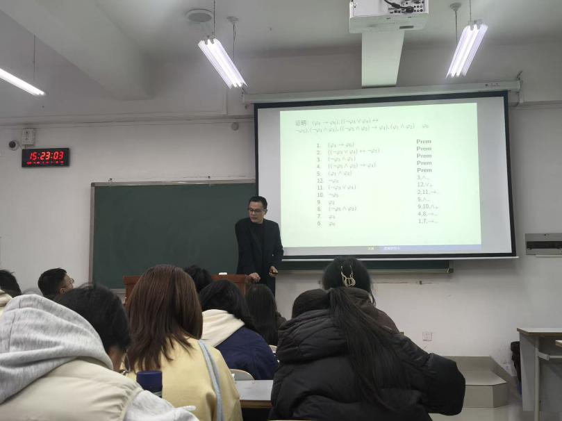 讲座伊始,梁真老师从离散数学在高校哲学专业中的普遍开设现状切入,以生动幽默的语言阐述了离散数学和哲学专业之间的内在联系,并强调了学好逻辑学对于大一奠定哲学基础及未来专业发展的重要意义。