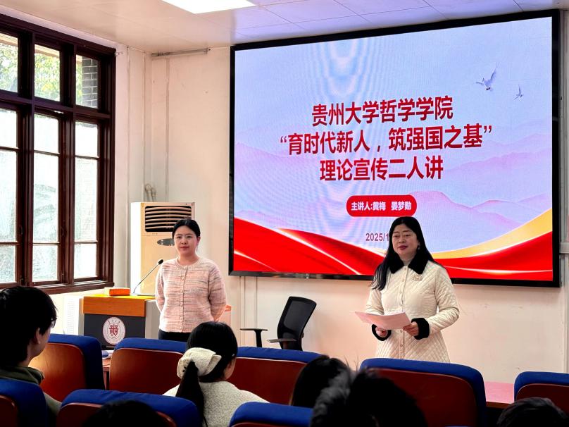 2025年11月27日,贵州大学哲学学院在人文楼308开展“育时代新人,筑强国之基”理论宣传二人讲活动。学院党委书记黄梅、学生科科长晏梦勋作为主讲人,围绕当今时代发展背景下的哲学学科发展、学生成长等内容,为同学们带来一场兼具思想深度与实践温度的宣讲,全体入党积极分子参加活动。