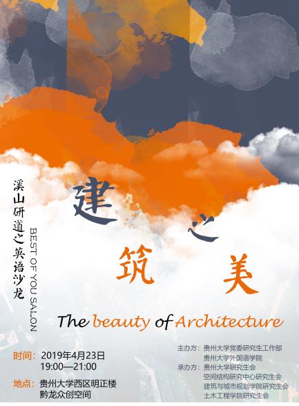 2019年4月23日19点,贵州大学西区明正楼黔龙众创空间,让我们一起领略世界建筑之美。