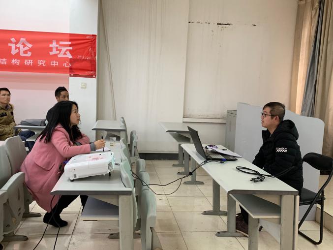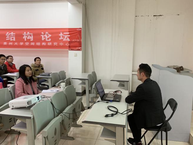 2019年3月23日下午14:30,空间结构研究中心“2019年结构论坛学术报告”在贵州大学蔡家关校区空间楼314会议室举行。本期嘉宾——空间结构研究中心校级优秀毕业生朱锐、十佳研究生徐增茂为师生们分别带来了题为《斜放网格棱柱面密肋折板网壳的静动力分析》、《新型高层装配式蜂窝型钢网格盒式双筒结构动力特征与抗震性能的有限元分析》的精彩的学术报告。报告会由陈红鸟教授主持。研一全体研究生参加了本次报告会,现场学术交流气氛浓厚而活跃。