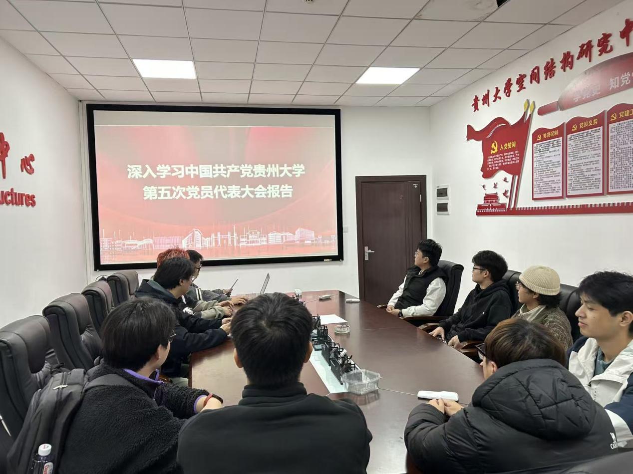 2025117日,空间结构研究中心研究生团总支在1号会议室积极组织开展了《中国共产党贵州大学第五次党员代表大会报告》专题学习活动,深入领会报告内涵,凝聚奋进力量。