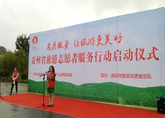 最后,贵州省旅游局吴迈副巡视员向旅游志愿者授旗,旅游志愿者服务活动正式开始。