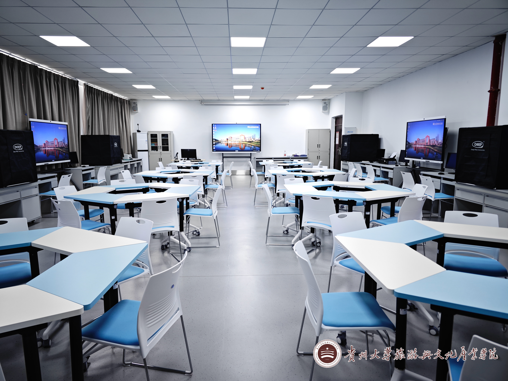 摄影艺术与影视文化实验室主要承担本科教学的摄影基础能力实训、创业能力提升实训、影视制作能力实训、文旅互动研讨(包含饮食文化、茶文化、动漫文化、影视文化、旅行社管理、研究方法与学术论文写作等)、创意摄影实验(广告摄影)、会展管理营销策划实训等教学实践活动,还承担学科竞赛及挑战杯科技作品竞赛等活动的作品制作及演练等。实验室内主要有微单数码照相机、相机稳定器、图形工作站、65寸智慧屏、86寸智慧屏、广告摄影箱、照片级彩色喷墨打印机等设备用于教学科研活动。