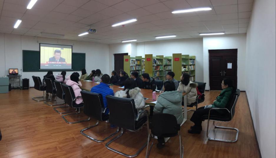 图:组织学院全体团员学习习近平总书记在庆祝改革开放四十周年大会上的讲话精神