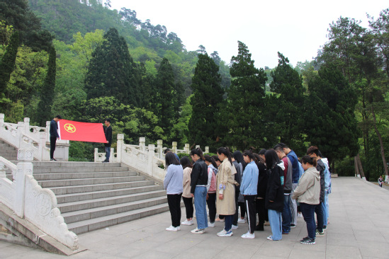 到达纪念碑,在院团委书记吴智恒的主持下祭奠活动正式开始,庄重的三鞠躬表达了对先烈的深切哀悼和无尽的敬仰之情。全体人员向革命先烈默哀一分钟致敬。随后由吴智恒领誓,在纪念碑下重温入团誓词。团员代表杨威玲演讲,她说道:青春心向党,建功新时代在我们青年身上绝不能只是一句口号而已。最后,大家纷纷敬献菊花并瞻仰纪念碑。