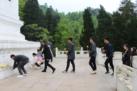 为永远铭记为民族独立、人民解放和国家富强、人民幸福作出巨大贡献和牺牲的英雄烈士,努力营造传承英烈精神、奋进新时代的良好氛围,激励全国各族人民紧密团结在以习近平同志为核心的党中央周围,为实现中华民族伟大复兴的中国梦而努力奋斗2019年4月11日上午,怀着对逝者的追忆,我院团员代表40余人前往黔灵山公园人民英雄纪念碑,举行了“缅怀革命先烈,传承英雄遗志”为主题的清明祭英烈活动。