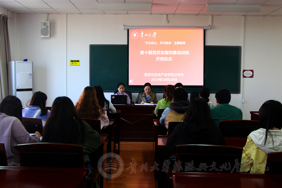 10月18日,旅游与文化产业学院分党校第十期发展对象集中培训开班仪式在西校区雅正楼304教室举行。院党委副书记王丽,副院长(主持工作)李锦宏,院党委委员、组织员谢爽出席本次开班仪式,王丽主持仪式。