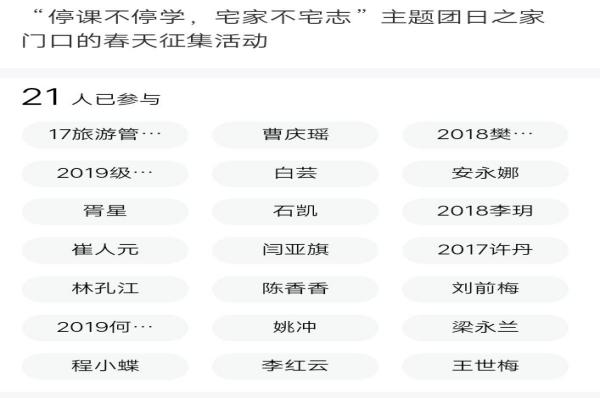 落实共青团贵州大学研究生委员会的《关于2020年上半年研究生团组织生活的安排意见》,2020年4月20日16时,我院研究生团总支全体团员发挥专业所长,在线上开展了“停课不停学,宅家不宅志”主题团日之家门口的春天征集活动。活动由团总支副书记李红云主持,21位团员全体参与,每位团员以文字、图片或视频为载体分享了家乡的春光之美。