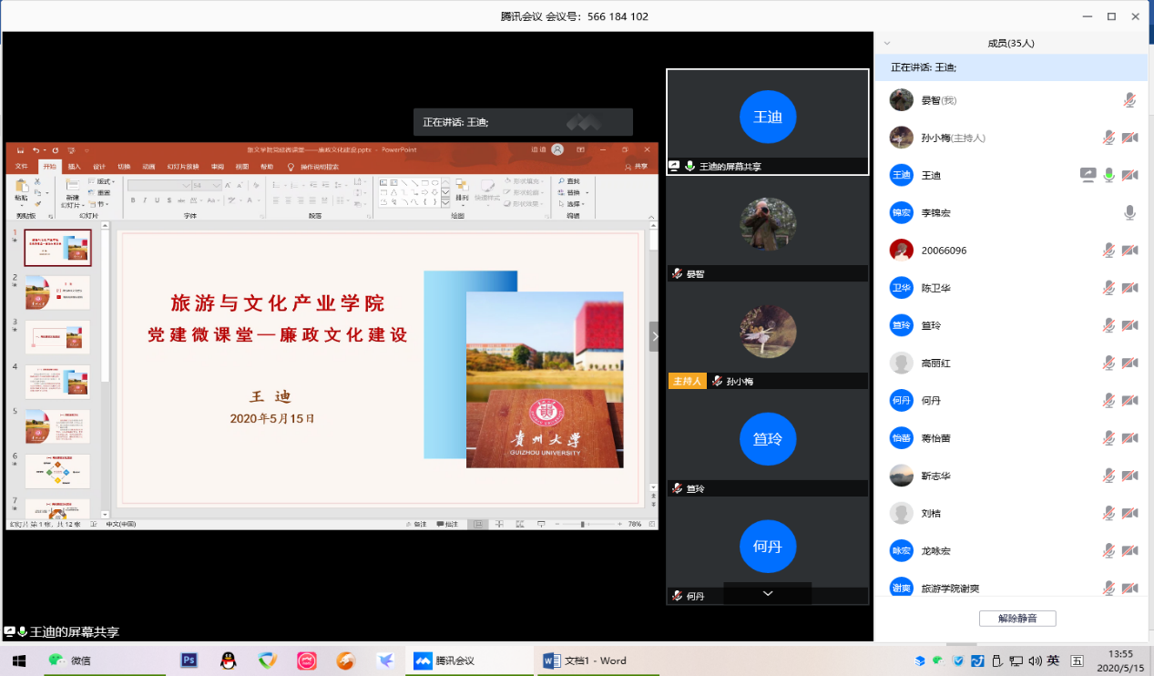为认真贯彻落实学校近期工作安排部署,扎实推进学院教职工政治理论学习,我院于2020年5月15日下午1点在腾讯会议网络云平台召开教职工政治理论学习会议,全院教职工参加了此次会议。会议由学院党委副书记(主持工作)王迪同志主持。