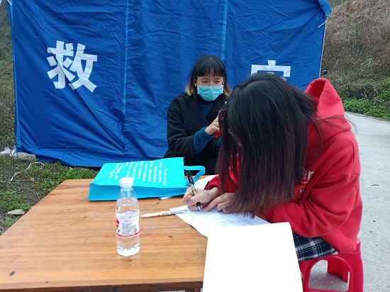 旅游管理172班学生叶晶参加由我省黔西南州望谟县团委倡议并带领的疫情防控志愿活动。一张蓝色工作证、一枚红色袖子、两支志愿队旗,外加笔和记录纸是叶晶所在志愿小分队的物资。她与队员张贴疫情宣传海报,提醒营业的商家做好防护工作,记录群众反映的问题并及时上报给负责人。同时协助王母街道祥乐村村民卡点检查。每天做好为进出群众测量体温、记录其出行情况并于每天下午三点半进行拍照上报等工作。作为一名中共预备党员的她在工作日志中写道:“我们八个人来自全国不同的学校、也是不同的年纪,却都是报以同一愿望,作为当代青年,为家乡献出一份力。”