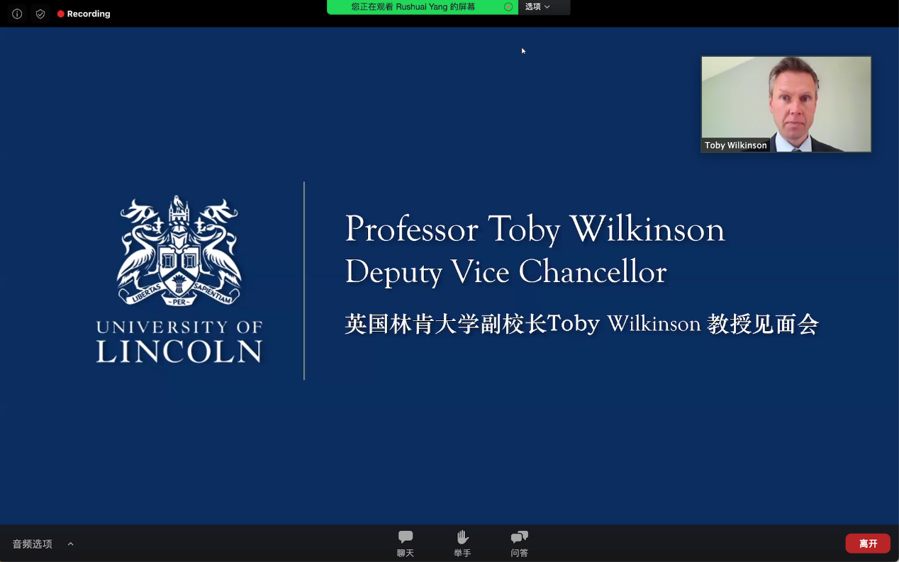 林肯大学副校长Toby Wilkinson教授和同学们在线交流