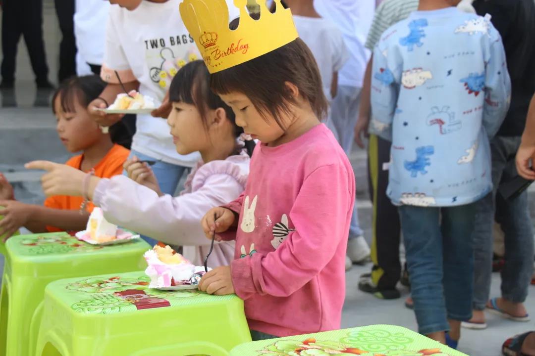 游戏过后,惊喜不停,实践队精心准备的蛋糕在生日快乐歌的歌声中出场,引发现场小朋友的尖叫连连,潘国娟许下愿望后,全体小朋友在实践队的组织下,有序排队领取蛋糕,品尝甜蜜。