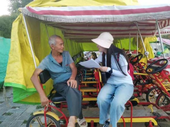 经过前期走访参观,团队在了解纳孔村基本情况后,紧接着以小组为单位深入农户家中真切交谈,进行问卷调查,深入且全面地了解农户对乡村发展旅游的看法、参与旅游经营管理的现状、旅游为当地农户增收的情况以及参与旅游过程中遇到的实际问题。通过与村干部交谈和实地走访村庄进行问卷调查,团队成员对纳孔村旅游发展情况有了较全面真实的了解。基于此,团队选取包括村支书、当地经营农家乐或民宿的老板、生活较为困难的村民和参与村中旅游发展的众合公司老板在内的较为典型的代表进行深度访谈。此外,深入村民家中时,团队成员大力宣传注射新冠疫苗的重要性和必要性,帮助村民了解掌握相关知识,协助村中工作的开展。