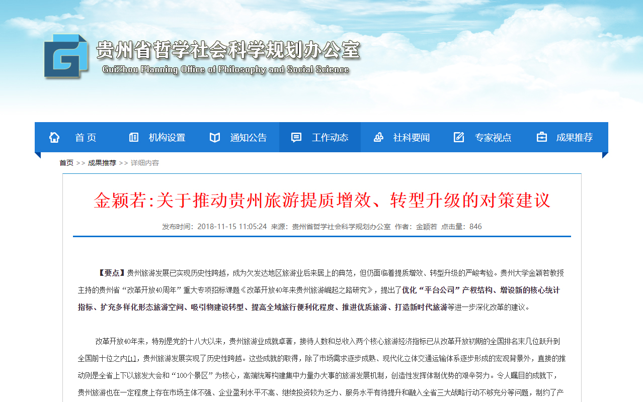 (本文系贵州省“改革开放40周年”重大专项招标课题《改革开放40年来贵州旅游崛起之路研究》的研究成果。作者金颖若为该课题负责人,贵州大学旅游与文化产业学院教授、旅游管理硕士点创办人。)