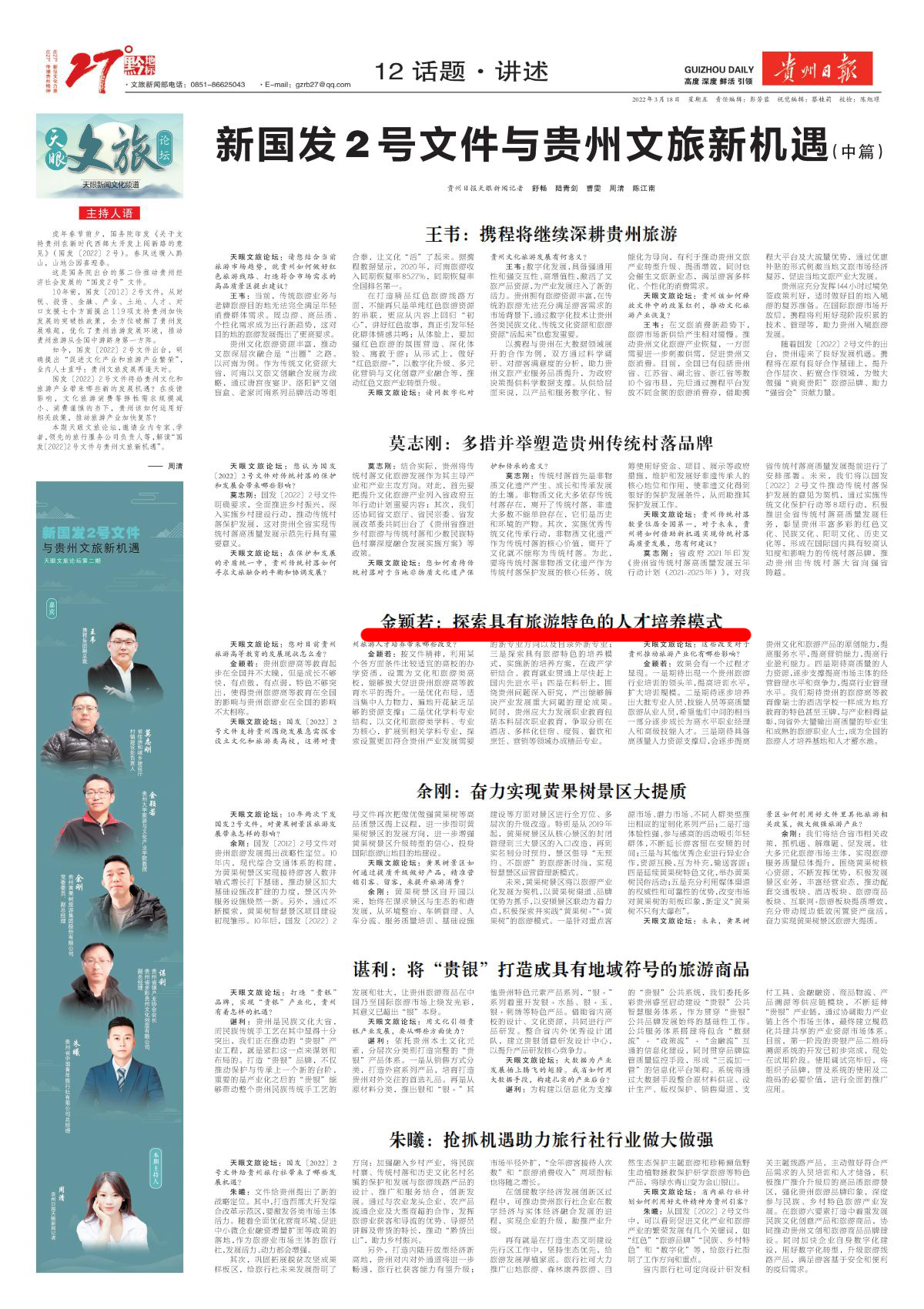 天眼文旅论坛:国发〔2022〕2号文件支持贵州围绕发展急需探索设立文化和旅游类高校,这将对贵州旅游人才培养带来哪些改变?