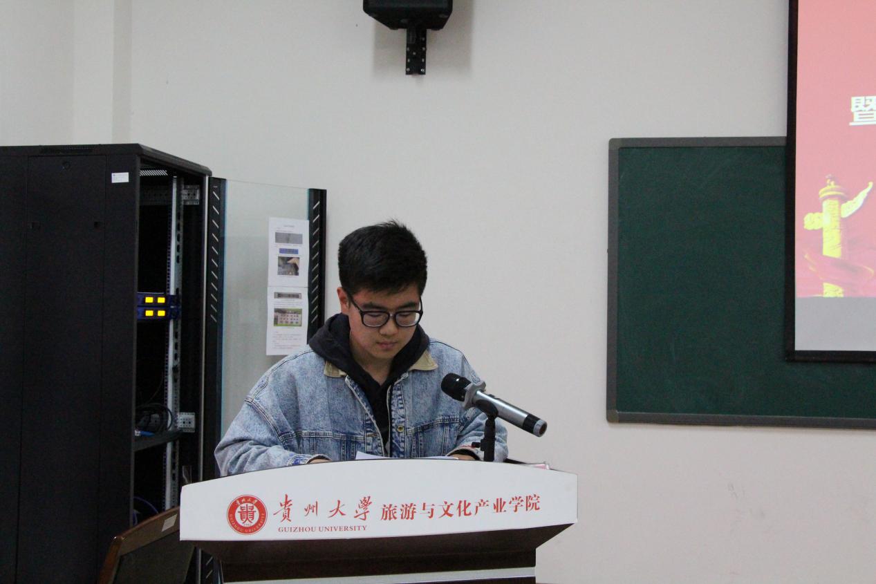 英旅201班的李文博同学作为发展对象培训学员代表上台发言。他表示,将树立正确的信仰,珍惜学习机会,努力学习党的知识,以合格党员的标准严格要求自己,加强知行合一,勇于创新实践,为实现中华民族伟大复兴贡献青春力量。