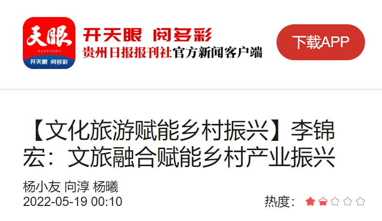 “改革开放四十多年来,经济社会实现全面发展,旅游业也随之兴起,文化旅游成为支柱产业。”5月18日,在2022年文化旅游赋能乡村振兴全国高端学术论坛上,贵州大学旅游与文化产业学院院长,硕士生导师李锦宏作主旨发言时说,乡村振兴战略实施,城乡关系从城乡统筹、城乡一体化迈入城乡融合发展,文旅融合在乡村振兴中勾勒诗与远方的美好图景。
