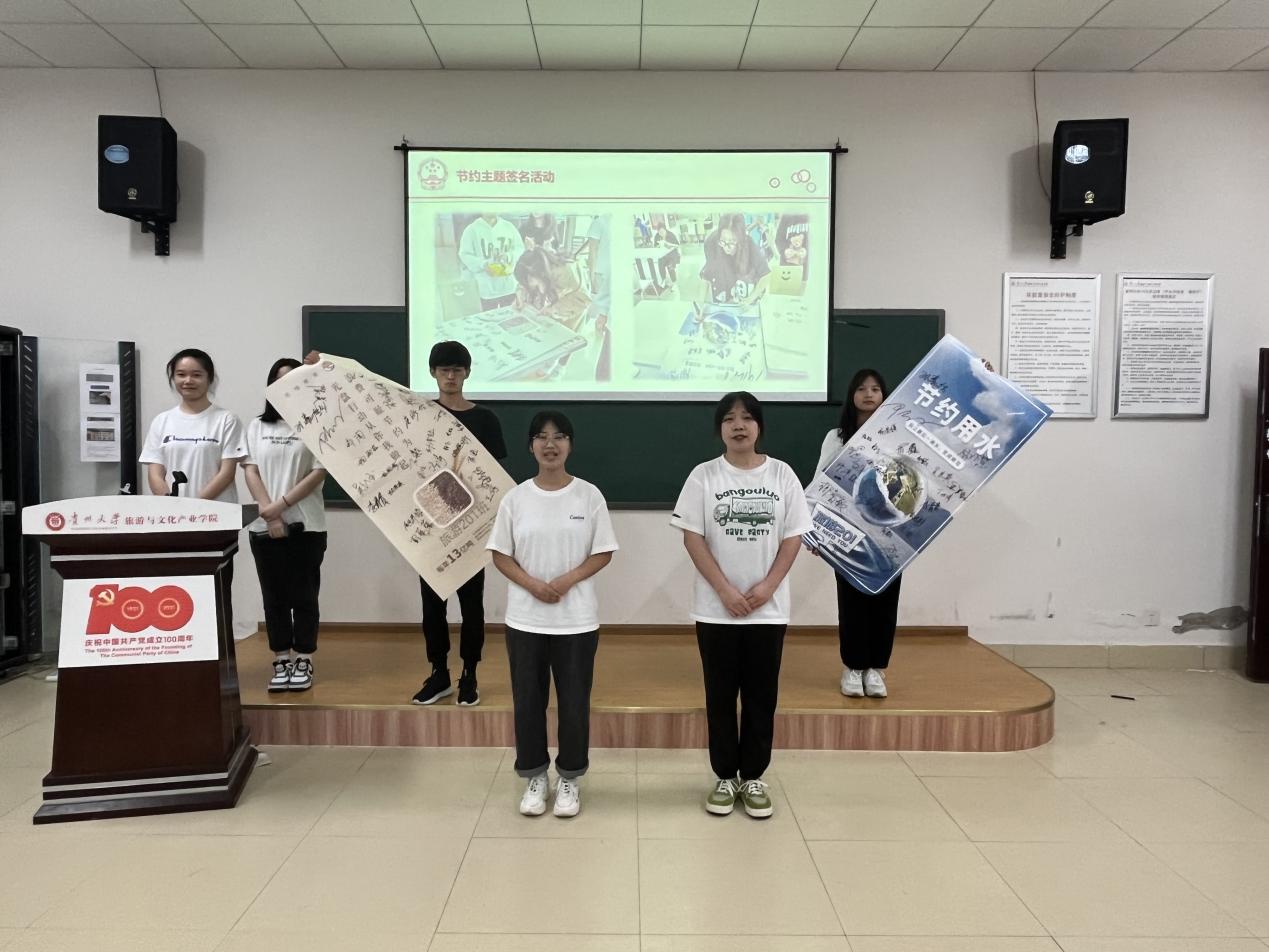 我院各支部重点围绕学习“习近平总书记在庆祝共青团成立100周年大会上的重要讲话精神”主题,同时结合“贵州省第十三次党代会精神主题演讲”“一滴水、一粒米光盘打卡”主题积极开展主题团日活动。英旅2104班团支部以“光盘打卡,青年一起向未来”为主题进行了生动的诗歌朗诵,展现了积极向上的青春风貌;旅游201班团支部围绕贵州省第十三次党代会精神,以“汉字拆解拼拼拼”的生动形式,带领同学们共同走进多彩贵州现代化建设新篇章;英旅202班以传承抗疫精神为主题进行诗朗诵,并开展了主题为“一滴水,一粒米”的班会。