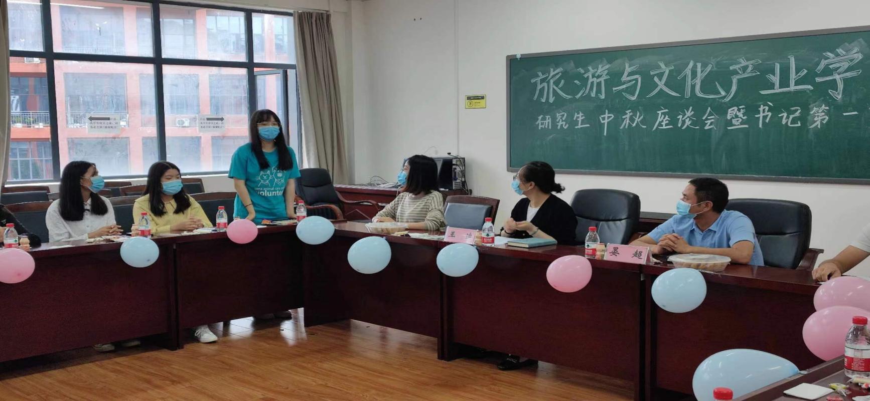 2022年9月10日,旅游与文化产业学院研究生中秋座谈会暨新学期书记第一课在雅正楼304会议室召开。学院党委书记王迪、党委副书记晏超出席会议,全体研究生参加会议。会议由学院研究生会车旭航同学主持。