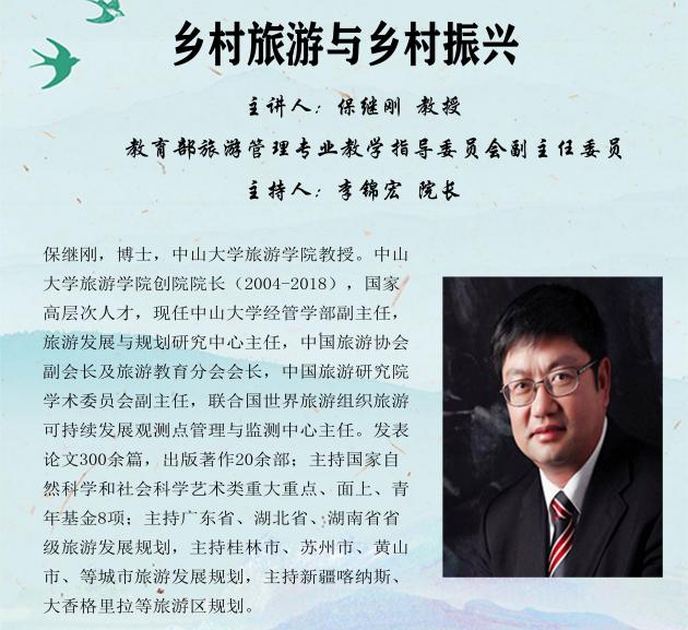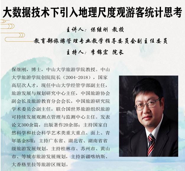 本次讲座共分为两场,第一场主题为“大数据技术下引入地理尺度观游客统计思考”,第二场讲座主题为“乡村旅游与乡村振兴”。
