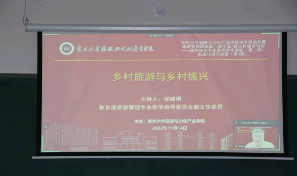 11月14日下午,学院邀请教育部长江学者特聘教授、教育部旅游管理专业教学指导委员副主任委员、联合国世界旅游组织旅游可持续发展观测点管理与监测中心主任、中山大学旅游学院创院院长保继刚教授为学院全体师生开设专题线上讲座。讲座采用线上线下相结合的形式,部分师生代表以线下形式于雅正楼309参会,其余师生通过线上腾讯会议参加,本次会议由学院院长李锦宏教授主持。
