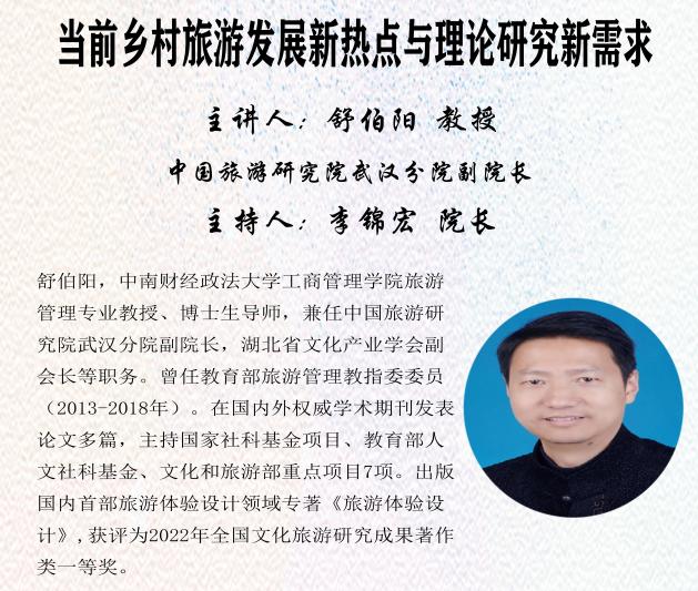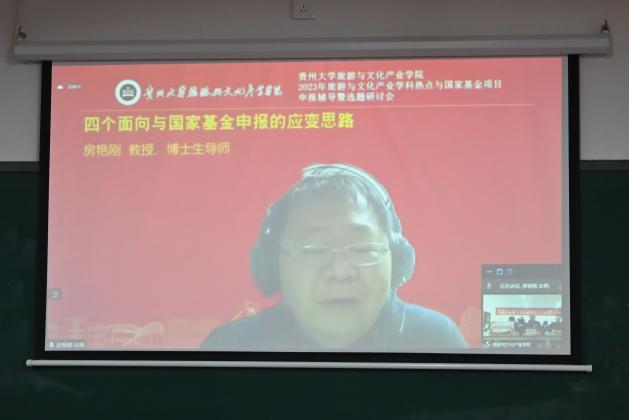 11月27日下午,学院邀请中国旅游研究院院长、文化和旅游部数据中心主任、博士生导师戴斌教授,中国旅游研究院武汉分院副院长、中南财经政法大学博士生导师舒伯阳教授,东北师范大学地理科学学院副院长、博士生导师房艳刚教授,国家社科基金重大项目首席专家、中山大学旅游学院博士生导师孙九霞教授,国家社科基金重大项目首席专家、四川大学文学与新闻学院博士生导师徐新建教授五位专家为全体师生开设“文化和旅游产业学科热点与国家基金项目申报选题研讨会”线上辅导报告。研讨会采用线上线下相结合的形式,部分师生代表以线下形式于雅正楼309参会,其余师生通过线上腾讯会议参加,本次会议由学院院长李锦宏教授主持。