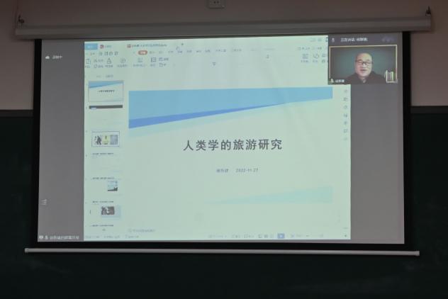 徐新建教授就现代性流动、观察式参与、交互民族志与实践人类学四个方面展开介绍,通过数据向与会师生阐明旅游已成为一种存在方式。随即,他利用参与式观察到观察式参与这一现象指出了当今多田野连接的人类学跟踪。最后,徐教授结合贵州省情,对交互民族志与实践人类学展开了阐述,使全院师生对人类学的旅游研究有了更直观的认识。