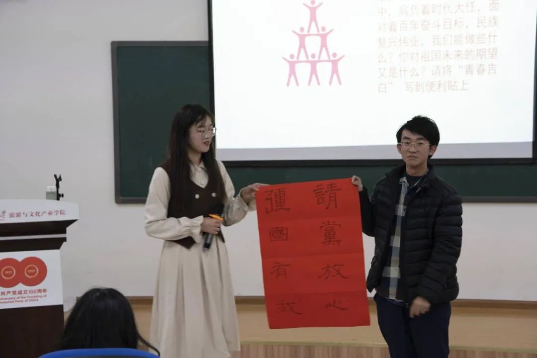 青年兴则国家兴,青年强则国家强。此次活动激发了我院旅游管理专业(中外合办学)2021级新生们的爱国热情,增强了同学们的责任感与使命感。作为青年大学生,要以史为鉴,从百年党史中汲取智慧和力量,终保持奋发有为的拼搏精神,把青春奋斗融入党和人民的事业,拿起中华民族伟大复兴的接力棒,在新的百年征程上更加坚定、更加自觉地牢记初心使命、开创美好未来!