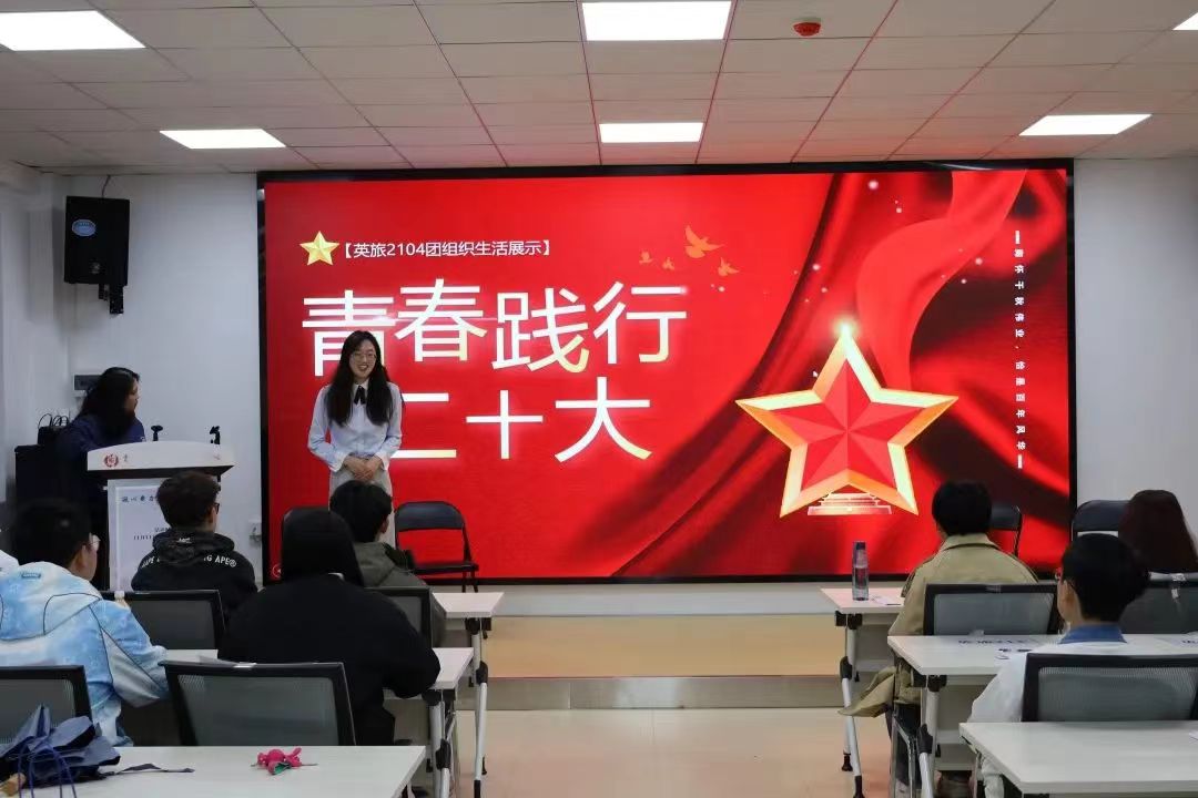 为了学习宣传和贯彻党的二十大精神,各班团支部开展了丰富多样的主题团组织生活。英旅2104团支部以“青春践行二十大”为主题,通过情景剧、诗朗诵、歌曲演唱等形式,展现了青年的活力;英旅2204团支部通过录制专题视频等方式展现了积极向上的精神风貌;英旅2203团支部紧紧围绕党的二十大精神,深入学习习近平总书记对抓好新时代青年工作提出的明确要求,立志做有理想、敢担当、能吃苦、肯奋斗的新时代好青年。