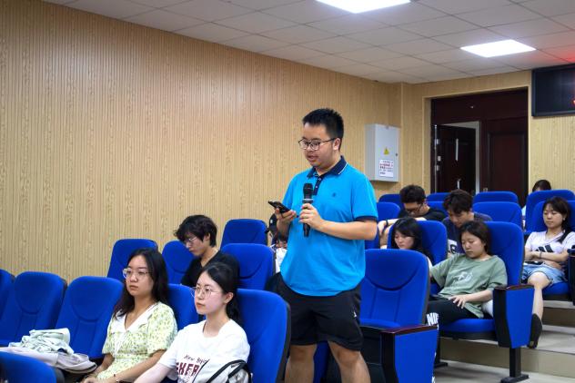 校工委副秘书长李景勃老师围绕“感恩、感动、踔厉、奋发”八个字进行总结讲话。她强调,我们首先是要感恩,我们青年学子生在红旗下,长在春风里,要感恩党,认真学习党的历史,自觉传承红色基因。其次是感动,对学院如此重视学校关心下一代工作表示感动,也对贵阳星光越剧团麒麟队的演出表示感动。麒麟队的成员年龄基本都在70岁以上,但仍精神矍铄,活跃在越剧表演的舞台上,只为传播中华优秀传统文化,传承红色基因。最后是踔厉奋发,李景勃老师希望身为新时代中国青年,要潜心求学、积极探索,用青春之我,奋斗之我,为祖国建设添砖加瓦,为学校高质量发展贡献旅文力量。