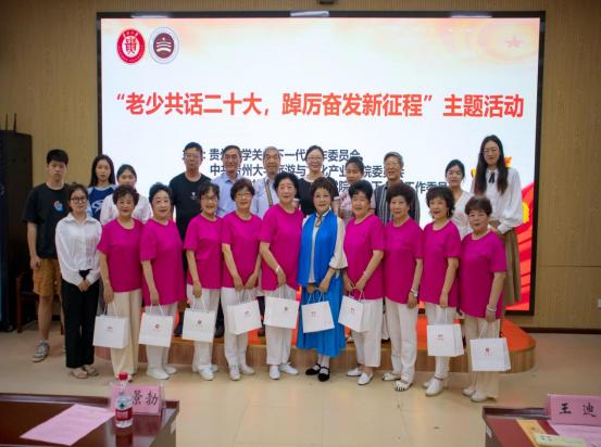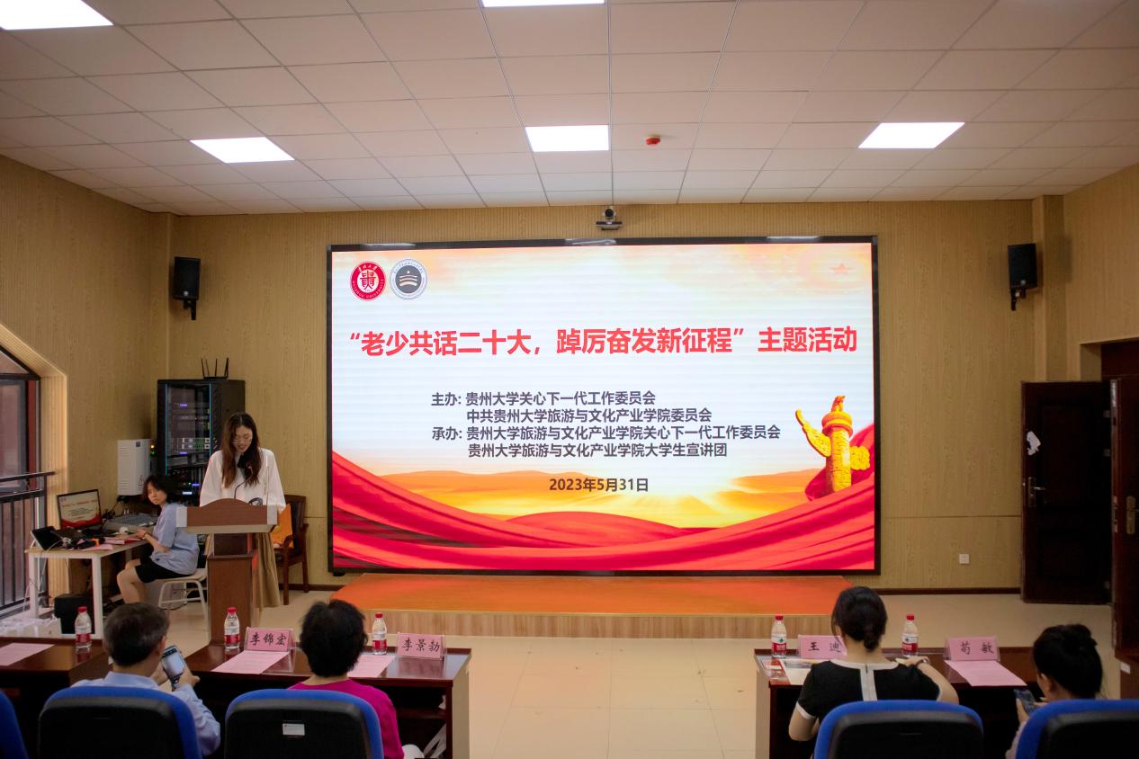 为充分发挥“五老”亲历者、见证者、实践者的优势,进一步激发旅文学子爱党爱国、爱校荣校的热情,结合当前学习贯彻习近平新时代中国特色社会主义思想主题教育的开展,5月31日下午,旅游与文化学院“老少共话二十大,踔厉奋发新征程”主题活动在雅正楼115室隆重举行。本次活动由贵州大学关心下一代工作委员会、中共贵州大学旅游与文化产业学院委员会主办,贵州大学旅游与文化产业学院关心下一代工作委员会、共青团贵州大学旅游与文化产业学院委员会大学生宣讲团承办。贵州大学关工委副秘书长李景勃、贵州大学退休老干部代表、贵阳星光越剧团麒麟队成员以及学院领导班子、师生代表出席。本次活动由学院主持队王萍同学主持。