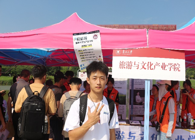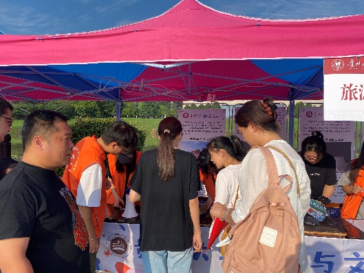 志愿者们有条不紊地进行着迎新工作,发挥了新生与学院之间的桥梁与纽带作用。他们全程坚守在迎新岗位中,引导新生们完成登记录入工作,耐心解答新生和家长的问题。忙碌了一天的学生志愿者刘浩表示:虽然今天天气炎热,但是能够帮助到新生同学们顺利完成报道,让同学们尽快体验到大学生活,再热也十分值得。希望在未来的四年里,新生们能奋发向上,努力学习,在贵大旅文学院留下美好的回忆。