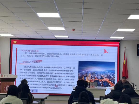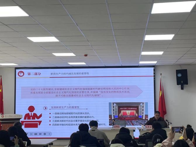 会议开始,学院院长李锦宏教授为本次讲座致辞,代表学院对于文丰安教授的莅临讲学表示热烈欢迎,介绍了文丰安教授丰富的学术报刊编辑经验,强调了本场讲座的学术前沿性及其科研意义。本次讲座以中国式现代化进程中新质生产力推动经济社会高质量发展为主题。