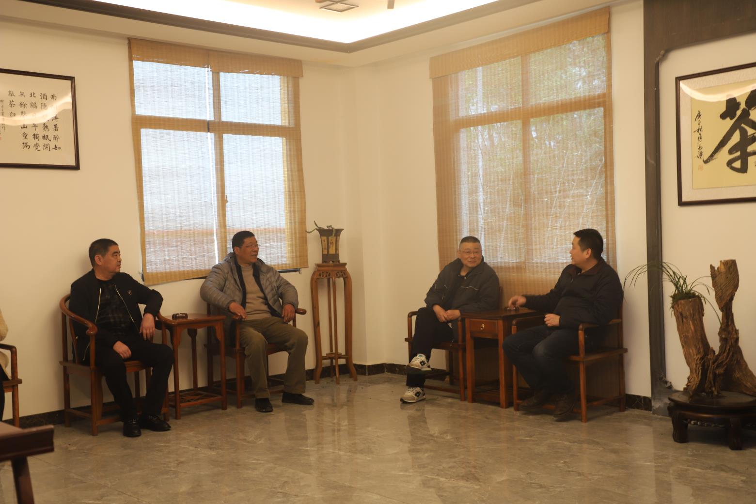 在公司会议室,企业和团队成员进行了座谈。覃昆介绍了此次调研的目的,提出希望与天贵茶业有限公司开展深度合作 。在科研方面,希望能在天贵茶业有限建立科研基地,公司为学院教师提供科研场地,科研成果应用于茶园,助力公司提质增收;在实践方面,希望能把天贵茶业有限公司作为学生实践基地,双方联合培养人才。双方就开展合作达成了初步意向。