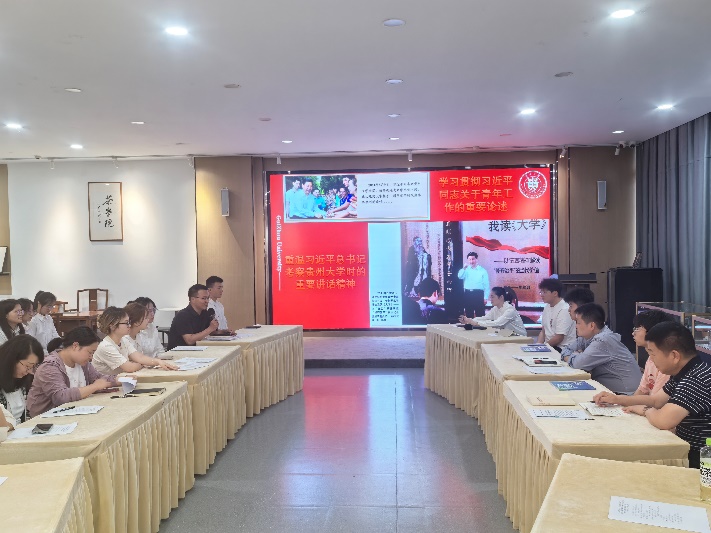 覃昆、滕召华老师分别做理论宣讲。覃昆老师带领大家学习了2025年3月习近平总书记考察贵州时的重要讲话精神,并重温学习了14年前的5月9日习近平主席考察贵州大学时的重要讲话精神;滕召华老师领学了习近平总书记《论党的青年工作》重要论述汇编部分内容。“青年理想的高度,决定国家未来的高度”,号召同学们听党话,跟党走,牢记习近平总书记的嘱托,“奋斗是青春最亮丽的底色,行动是青年最有效的磨砺”,希望每一位同学都能将所学所思转化为实际行动。