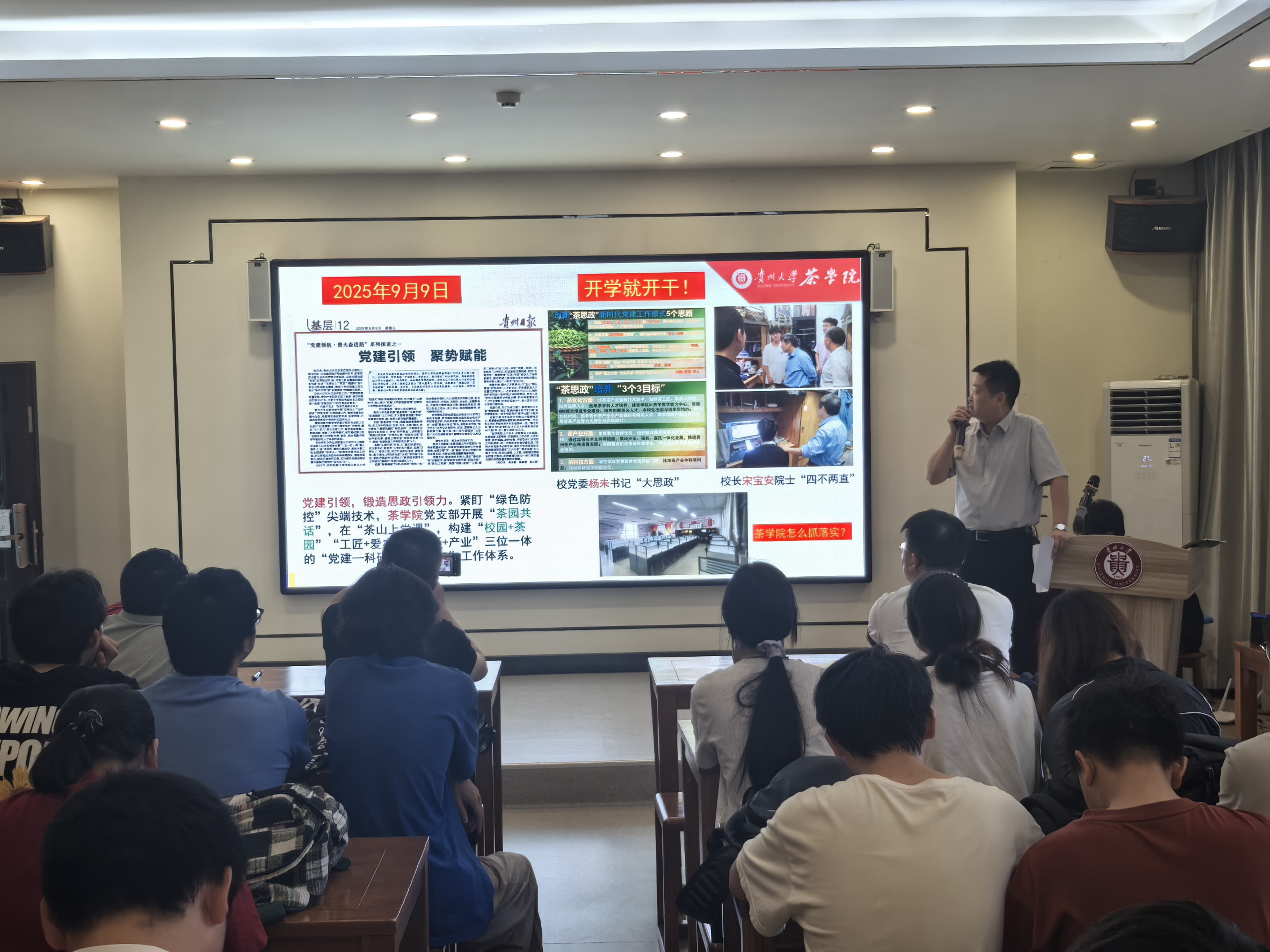 院党委委员、正处级组织员滕召华进一步强调了学业规划与思想政治教育相结合的重要性。茶学院党委书记覃昆以“开学第一课”为主题,开展思想政治教育,激励同学们坚定理想信念、勇担时代使命。