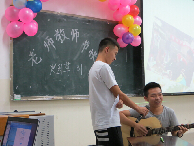 又是一年秋风送爽;又是一年金菊绽放;又是一年硕果飘香;又是一年丰收在望,在这个收获的季节里,我们满怀喜悦地迎来了第31个教师节。2015年9月10日,在这个特殊的日子里,为了感谢烟草学院的全体老师对学院建设的奉献和对学生的辛勤付出,烟草131班举办庆祝教师节师生联谊晚会,让烟草学院的师生们相聚一起,共同庆祝教师节,为烟草学院更加美好的明天而努力。