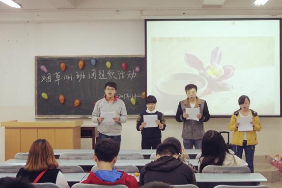 2015年11月22日烟草141班举办了“让“四心”,照亮成长之路”为主题的团组织活动。