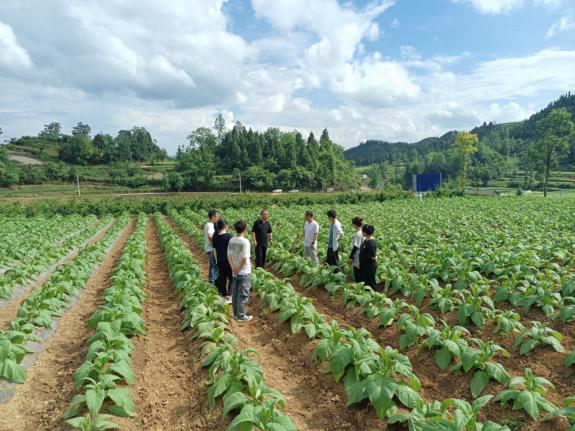 下午两点半,艾老师与张主任在舞阳烟叶收购点生产技术员潘洪师兄、舞阳烟叶收购点烘烤管理员张洪霏师兄以及六位同学的陪同下来到魏家屯育苗工场参观考察工作场所。了解情况后,一行人来到科技成果转化园查看烟株长势并对实验取样地进行选择。在此过程中,艾老师强调,一定要加强与农户之间的沟通,统筹安排,在烤烟栽培中,要做到行动统一,这样才能保证同一片烟田中的烟株生长相对整齐。烟草是作物,生长状况受多种因素影响,有的时候仅仅是一点微小的差别就可以导致长成后的烟株之间有很大的差异。