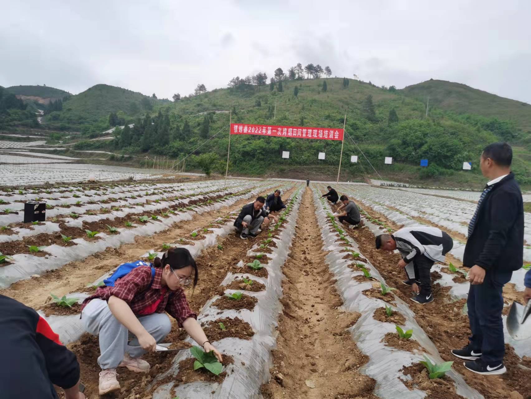 2022年5月7日下午十三点,为号召镇远县各烟叶站站点负责人动员烟农填土封口,了解封膜的意义,落实封膜技术,镇远县烟草专卖局开展了镇远县2022年第一次烤烟田间管理现场培训会。
