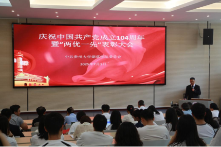 为庆祝中国共产党成立104周年,弘扬伟大建党精神,激励广大党员真抓实干、挺膺担当。7月1日下午,烟草学院隆重举行庆祝中国共产党成立104周年暨“七一”表彰大会。大会由院党委委员高焕晔主持,学院党委班子成员及全体师生党员参加会议。