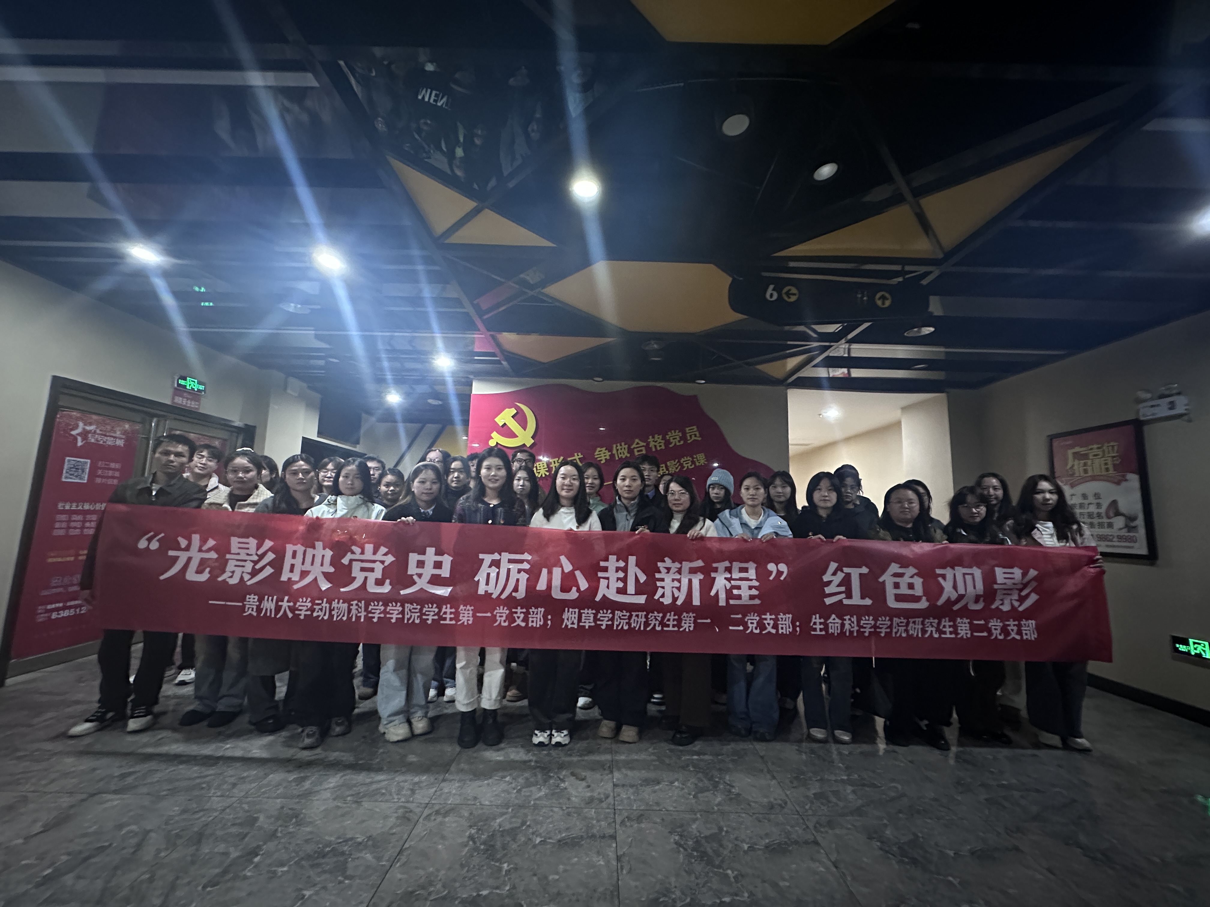 为深入学习贯彻习近平新时代中国特色社会主义思想,推动党史学习教育走深走实、入脑入心,2025年11月4日,贵州大学烟草学院关爱下一代工作委员会与贵州大学烟草学院研究生第一党支部、第二党支部以及动物科学学院学生第一党支部、生命科学学院研究生第二党支部,在星空影城(亨特公园里巨幕激光店)联合开展“光影映党史,砺心赴新程”主题党日活动。本次活动以爱国主义教育为核心,组织全体党员集中观看红色题材电影《南京照相馆》,通过沉浸式观影体验回望历史、传承红色基因,让爱国主义精神在观影学习中厚植于心。