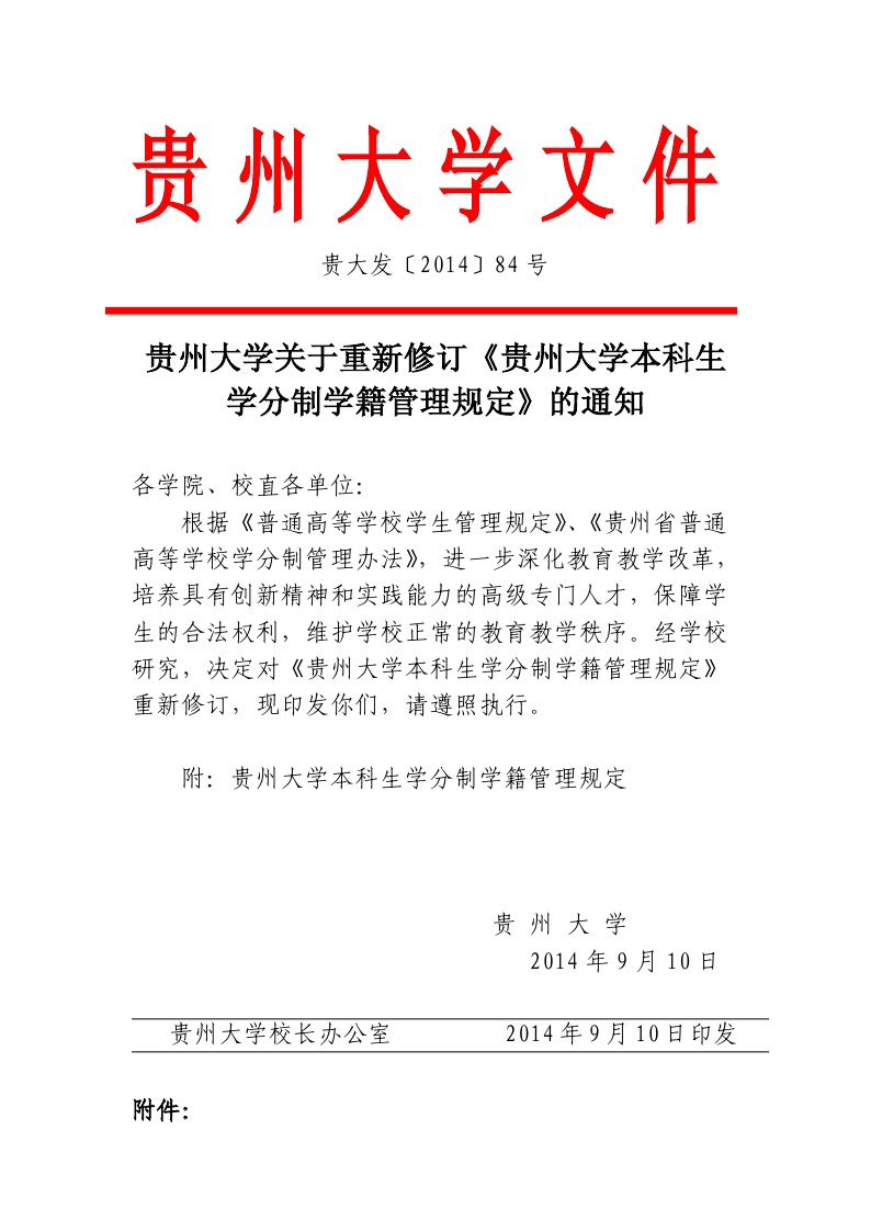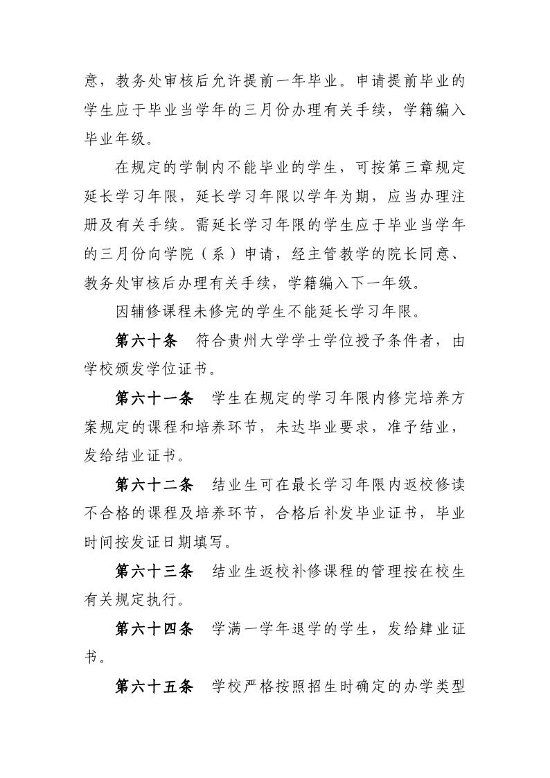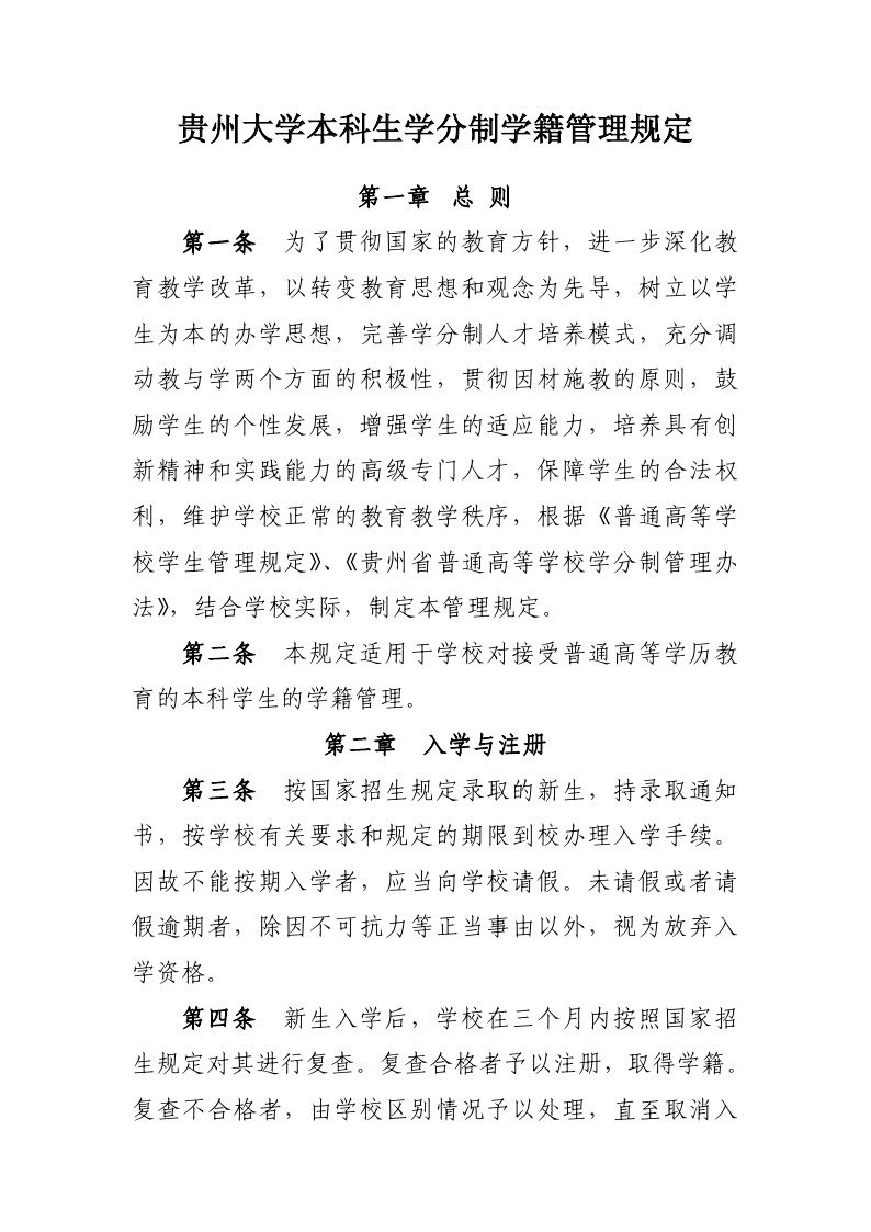 关于重新修订《贵州大学本科生学分制学籍管理规定》的规定