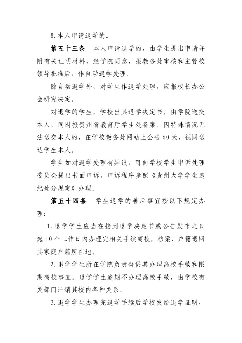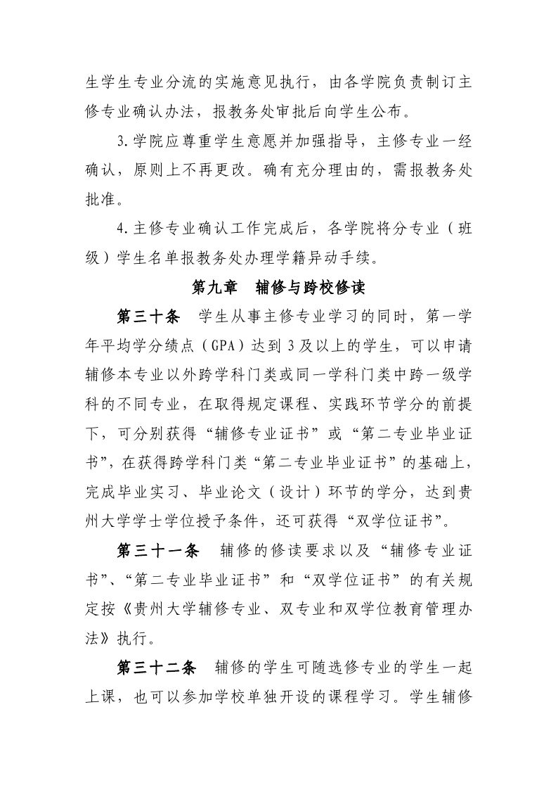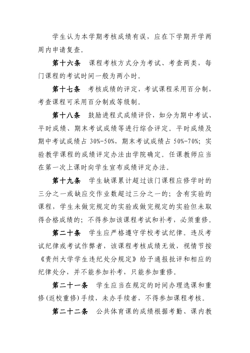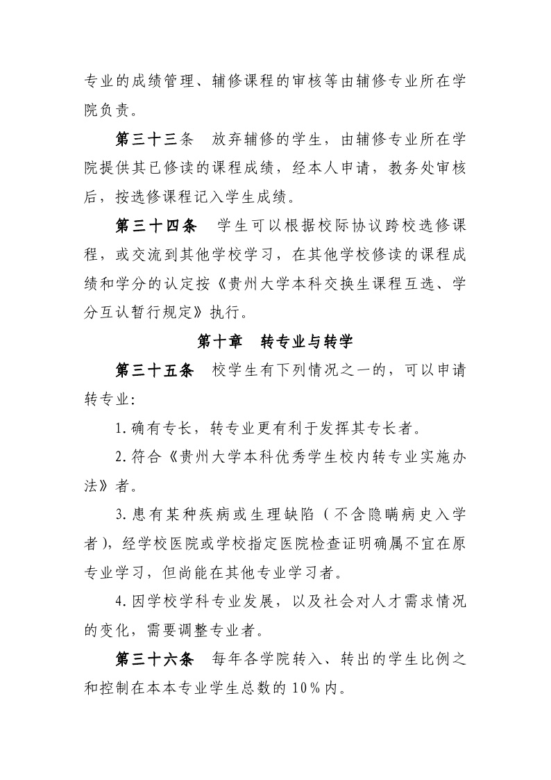 关于重新修订《贵州大学本科生学分制学籍管理规定》的规定