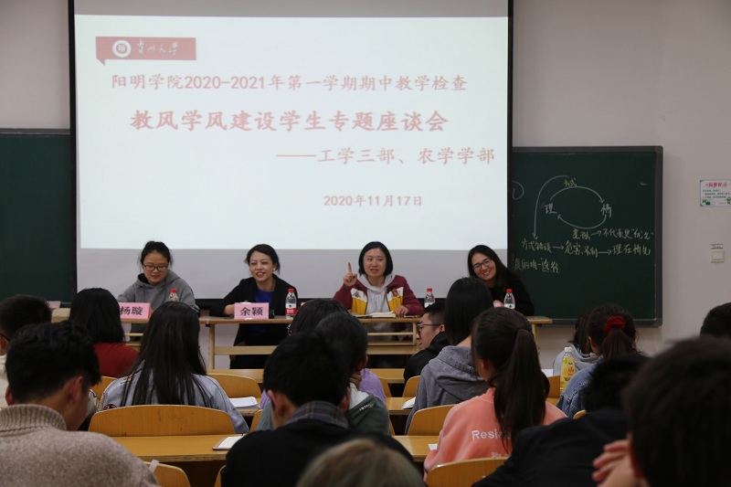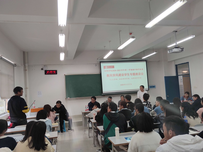 阳明学院每学期一次的期中教学检查教风学风建设学生专题座谈会和通识选修课程教师座谈会分别于2020年11月17日、19日召开。